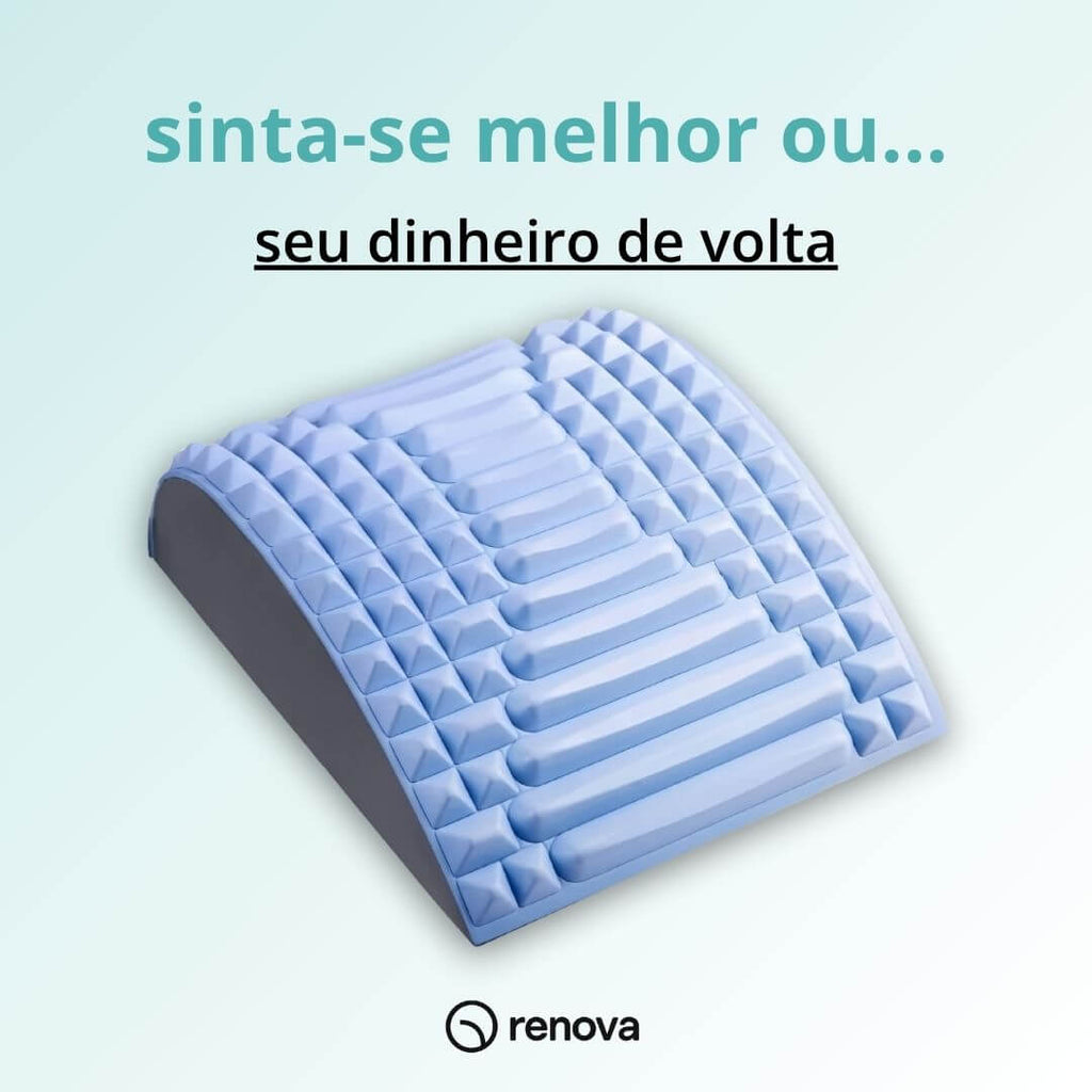Com design ergonômico e ajustável, o Renova se adapta perfeitamente ao seu corpo, podendo ser usado em casa, no trabalho ou em qualquer lugar. Ideal para quem sofre com dores causadas por má postura, hérnia de disco ou longos períodos sentado.